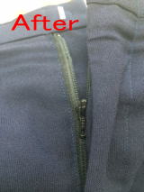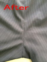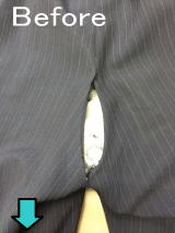 ビジネスマンのスーツは作業着です。こんなに大きな穴があっては履けません。スラックスがダメになってしまうと上のジャケットも着れません