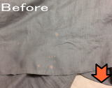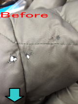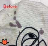 シミは見た目が悪いだけでなく長く放置していると布地自体も傷めてしまいます。毛が抜けてしまったり風合いを損ねてしまいます。特殊な洗浄剤によって風合いをもどしつつ汚れも落とします。