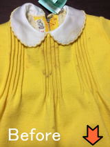 ご自分が小さい時に着られていたワンピースをわが子にも着せたいと出してみたら、あちこちにシミや虫穴がありました。シミ抜きとお修理で着用できるレベルまでお直しできました。また新たな想い出が綴られることでしょう