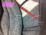 ニット類の穴は編み直しですと高額になってしまいますが穴がふさがるだけで大丈夫というご依頼が多いです。