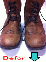 お手入れせずに履き続けたブーツにたくさんの傷があり、革も油分が抜けてしまい、ガサガサした状態でした。